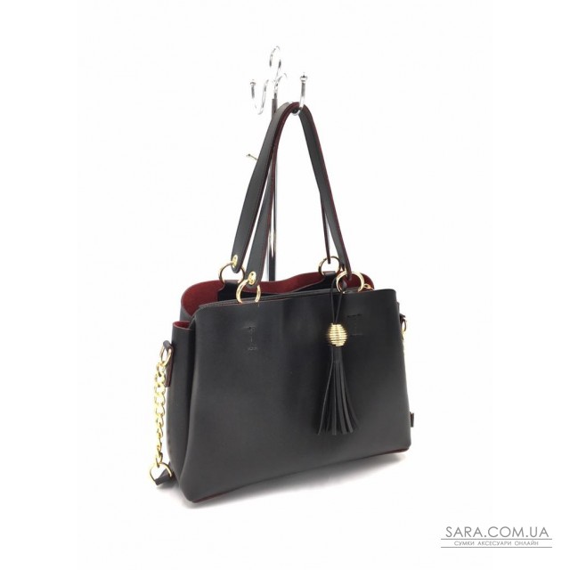 Жіноча сумка має всередині 3 відділення, центральне-на блискавці, два інших - на кнопках.