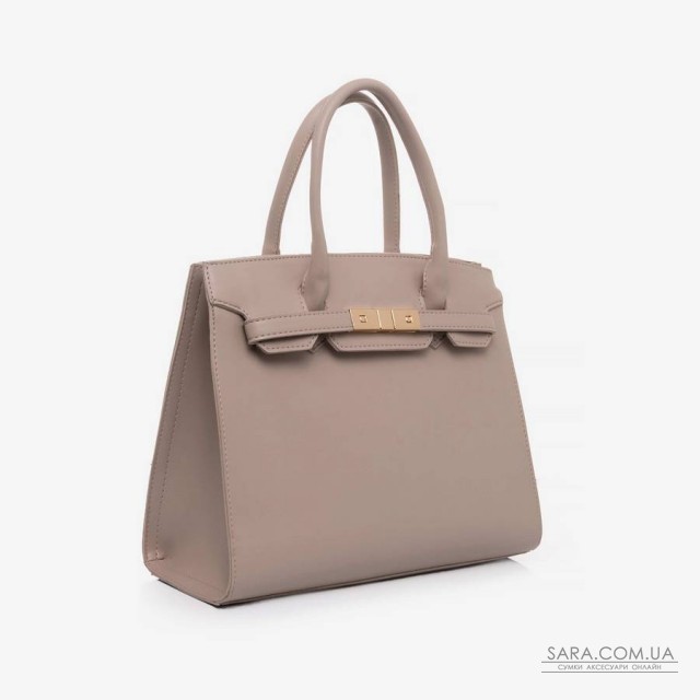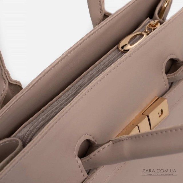 Сумку, з простим кроєм та мінімальним оздобленням, виконано з шкірозамінника високої якості, щоб її використання було максимально тривалим та приємним. Основна увага акцентується на гарній текстурі шкірзамінника ззовні, який з внутрішньої сторони має оригінальне покриття імітоване під велюр. Сумочка має дві короткі ручки, які розраховані на комфортне транспортування в руці. До комплекту входить довгий регульований ремінець. Задня стінка оснащена врізною кишенею на застібці. На дні встановлені металеві ніжки. Весь виріб зачиняється на блискавку.