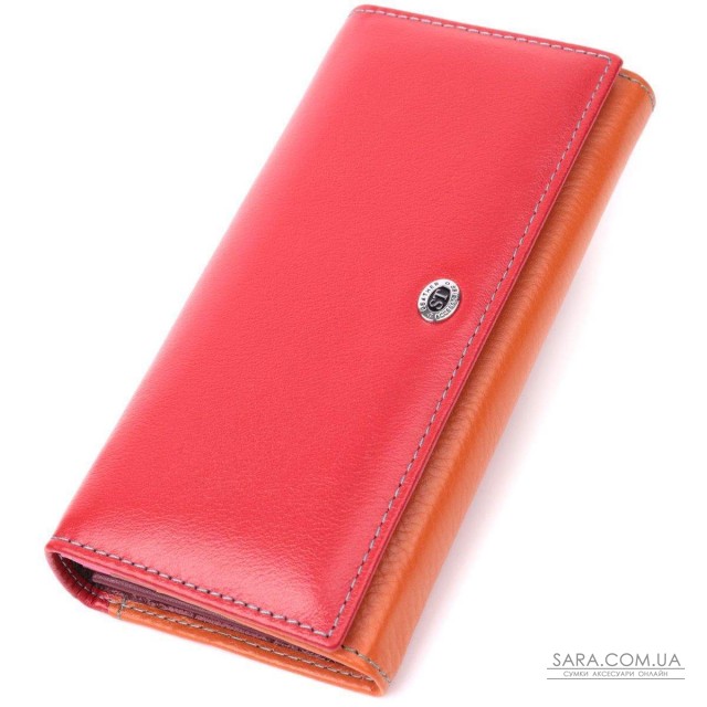 Яскраве жіноче портмоне в два складення з натуральної шкіри найвищої якості. Перше, що впадає в око це колірне рішення, замість однотонного аксесуара ми маємо різнокольоровий, який містить два основні зовнішні кольори і кілька додаткових всередині. Шкіряне портмоне дуже практичне і служить досить довго. Аксесуар складається з чотирьох містких кишень для купюр, двох кишень на блискавках через всю довжину, восьми осередків для пластикових карток, прихованої кишені та зовнішньої кишені на блискавці, що чудово прослужить для монет. Портмоне доповнено надійною фурнітурою. Укомплектований гаманець у фірмову картонну коробку білого кольору.