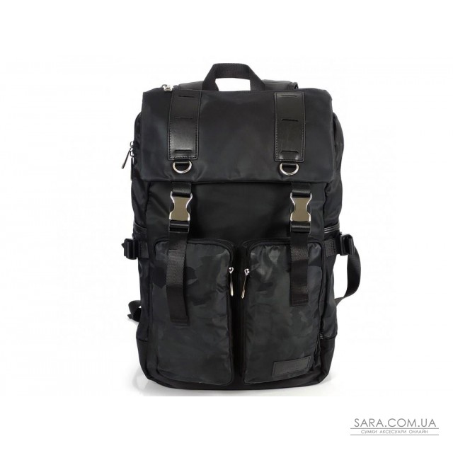 Чорний великий рюкзак Tiding Bag BPT01-CV-174254-1A з клапаном виконаний з текстилю і має розміри 30 x 45 х 12 см. Рюкзак має одне основне відділення на блискавці і клапани, що додатково фіксуються, на застібки.