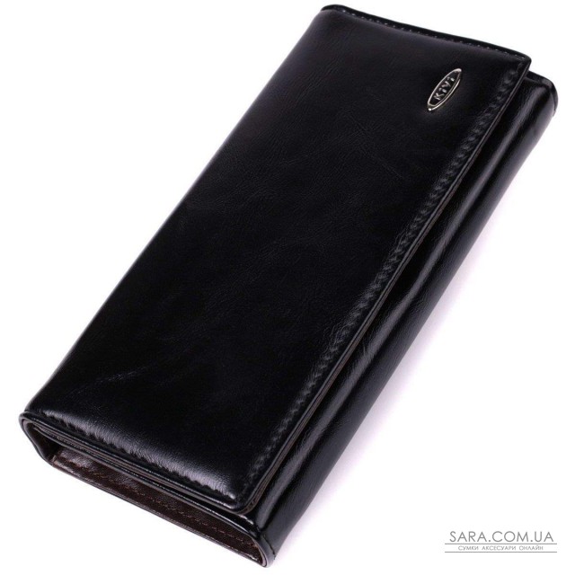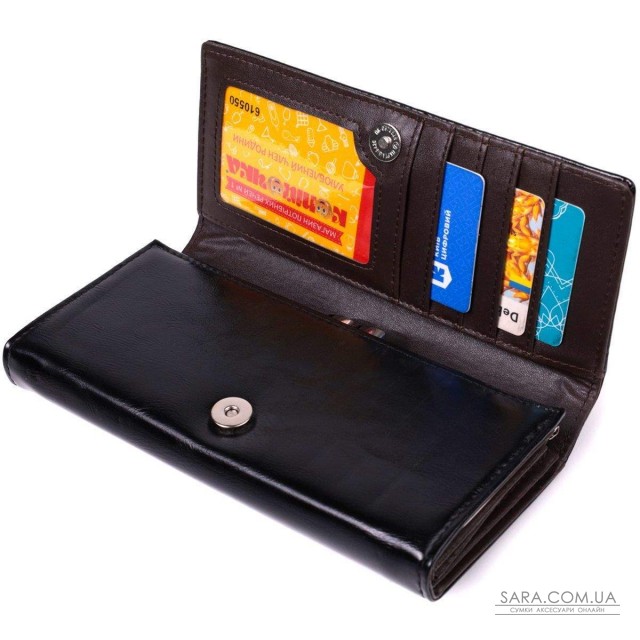 Жіночий стильний гаманець у класичному дизайні, виготовлений з якісного екошкіри, яка нічим не поступається шкіряним виробам. Аксесуар складається з трьох широких відділень для купюр, кишені-перегородки на блискавці, монетниці, однієї прихованої кишені та п'яти осередків під пластикові картки. Закривається гаманець прямокутним клапаном на магніт.