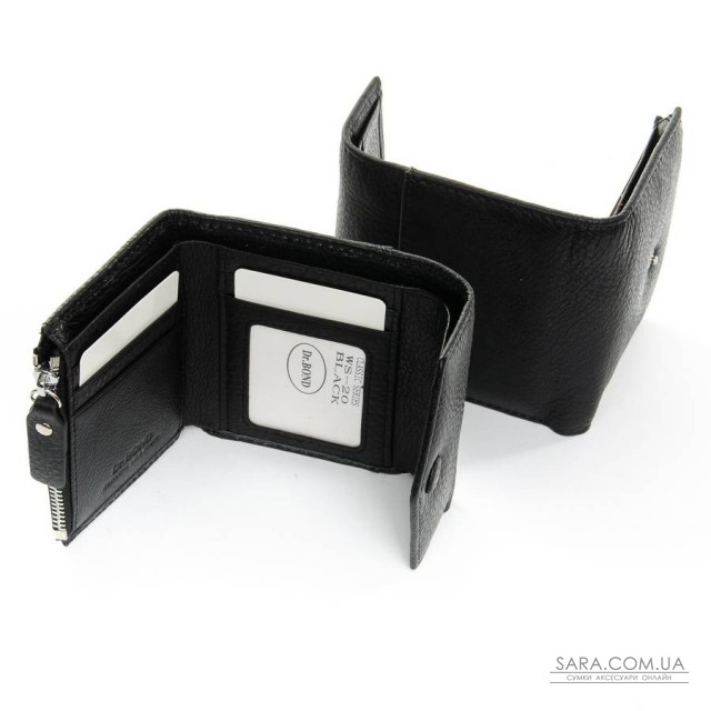 Жіночий компактний шкіряний гаманець DR. BOND. Основне відділення закривається клапаном на кнопку. М'яка шкіра з натуральною текстурою. Всередині знаходиться одне велике відкрите відділення для банкнот, 5 кишень для візитних карт і 2 великі відкриті кишені, а також монетница на блискавці. Ззовні гаманця на зворотному боці є плоска відкрита кишеня.