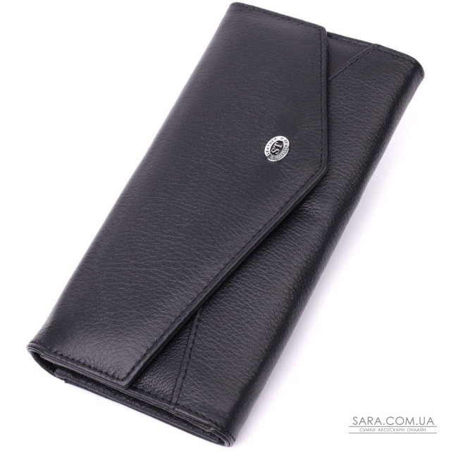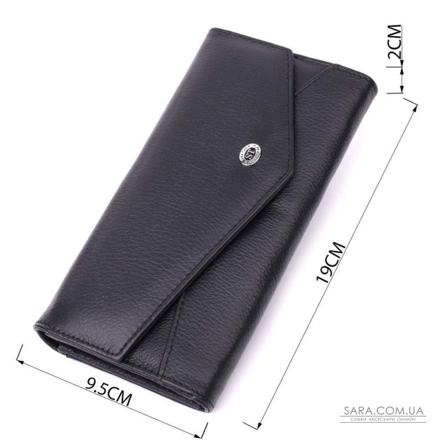 Зручне жіноче портмоне з незвичайним геометричним клапаном, що закривається на кнопку. Модель пошита з якісної шкіри, яка чудово проявила себе у довгостроковій експлуатації. Аксесуар складається з двох відділень для купюр, кишені на блискавці, вісімнадцяти осередків для пластикових карток, однієї прихованої кишені, трьох прилеглих кишень та монетниці зовні. Модель упакована в коробочку, що дуже зручно, якщо виріб призначений для подарунка.