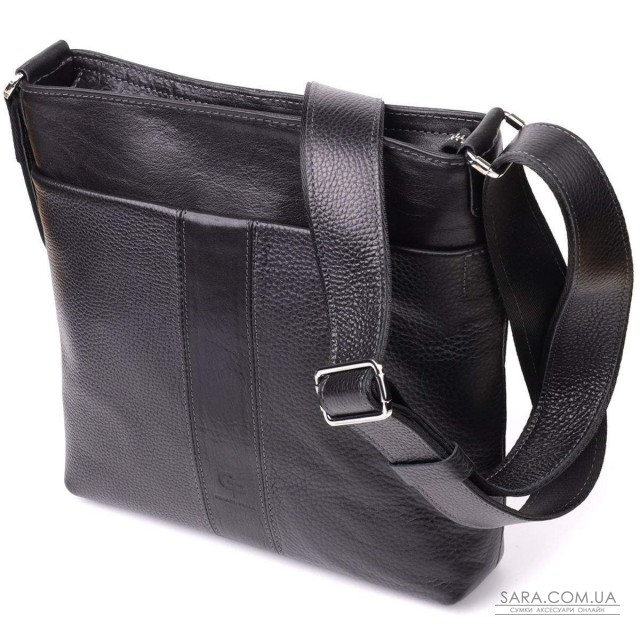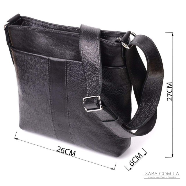Практична та стильна сумка, виконана з натуральної шкіри високої якості. Універсальний чорний колір робить аксесуар доречним як у діловому, так і повсякденному образі. Цікава особливість моделі – поєднання двох фактур шкіри: гладкої та зернистої, що надає виробу виразності та підкреслює індивідуальність власника. Сумка відрізняється міцністю, надійністю та довговічністю, а завдяки продуманому дизайну в неї легко поміщаються всі необхідні речі. Це відмінне рішення для активних та сучасних людей, які цінують комфорт, якість та стиль. Поставляється в оригінальному фірмовому чохлі, що робить її не тільки зручним аксесуаром, а й гідним подарунком.