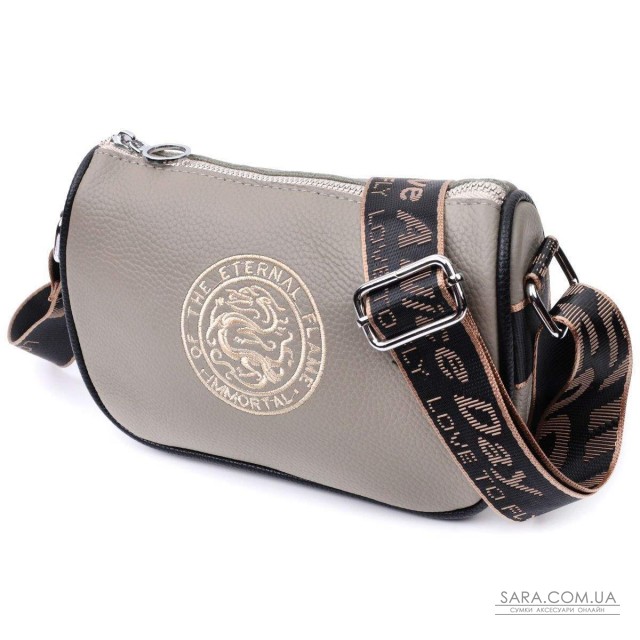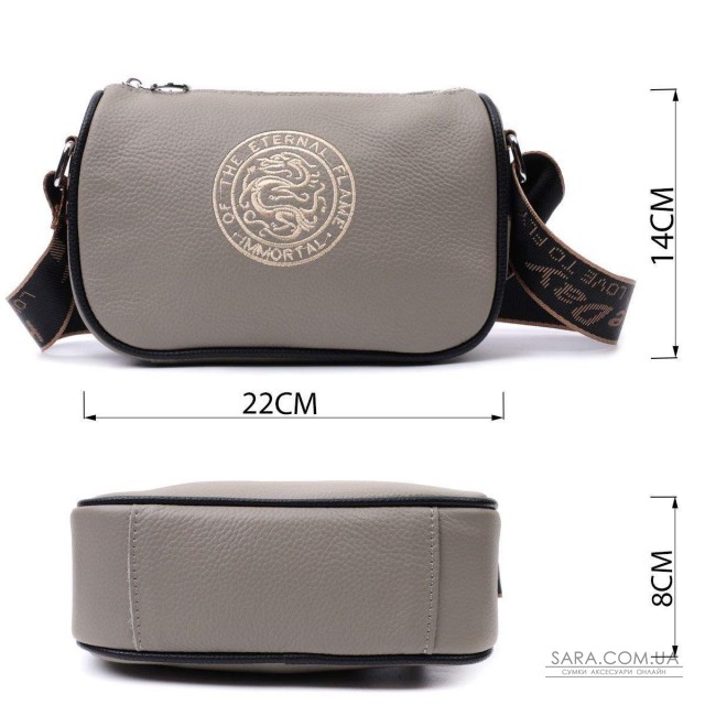 Стильна жіноча сумка з вишивкою по центру з натуральної якісної шкіри. Аксесуар складається з основного відділення, яке закривається на блискавку, потайної кишені на блискавці та кишені відкритого типу всередині, а також кишені на блискавці зовні на тильній стороні. Носити сумку можна в руці, під рукою, на плечі та через плече, для цього є не знімний текстильний ремінь. В аксесуарі використано якісну фурнітуру кольору срібла.