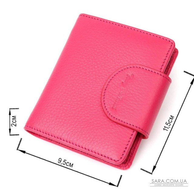 Неперевершений місткий жіночий гаманець із натуральної шкіри. Аксесуар складається з двох широких відділень для купюр, дев'яти осередків для пластикових карток, двох прилеглих кишень, кишені під сіточкою та монетниці під клапаном зовні. У виробі використано якісну фурнітуру золотистого кольору. Закривається гаманець шкіряним хлястиком на кнопку. Купуючи цей шкіряний гаманець, Ви не тільки набуваєте стильної речі, але й отримуєте якісний аксесуар, який прослужить не один рік.
