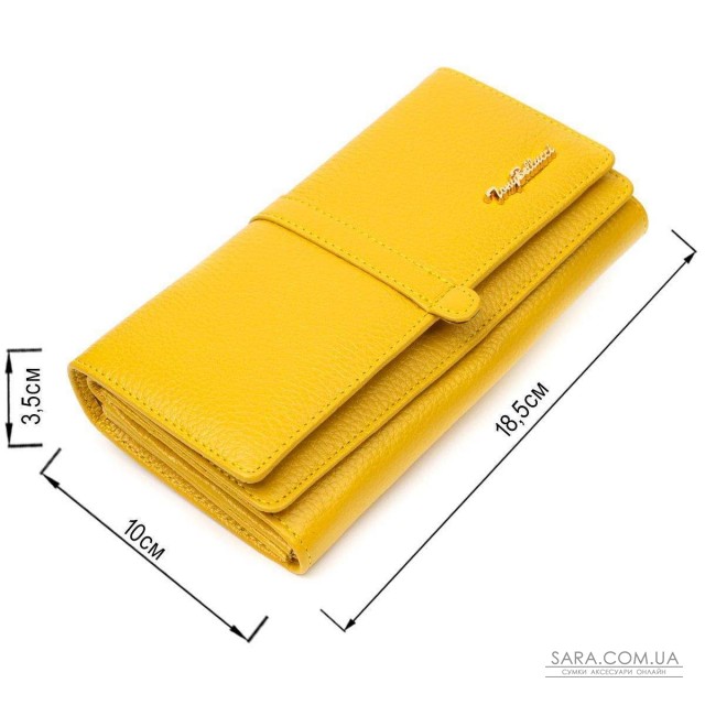 Яскравий жіночий гаманець із натуральної шкіри флотар, для якої характерна міцність, зносостійкість та зерниста фактура. Аксесуар складається з чотирьох широких відділень для купюр, одинадцяти осередків для пластикових карток, двох прилеглих кишень та трьох кишень на блискавках, які можна використовувати як монетниці. У виробі використано якісну фурнітуру золотистого кольору. Закривається гаманець клапаном на кнопку. Купуючи шкіряний гаманець собі або на подарунок усі хочуть отримати якісну та стильну річ, саме такі вироби представлені у нашому магазині, а наші досвідчені менеджери допоможуть визначитися з вибором.