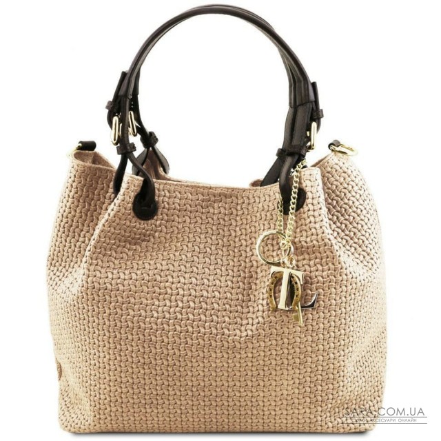 Шкіряна жіноча сумка-шоппер KeyLuck з плетеною тисненням Tuscany TL141573