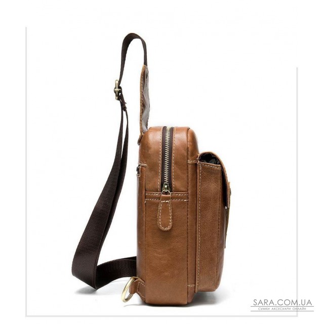 Міні-рюкзак шкіряний на одне плече B10-8573 Joynee. Виріб на одне відділення з двома внутрішніми кишенями: виразний і відкритий. Застібається за допомогою блискавки. На лицьовій стороні розташовується об'ємний кишеню з хлястиком на кнопці, а на задній стороні є виразний горизонтальний з блискавкою. Шлею можна перестегівать право /ліво.