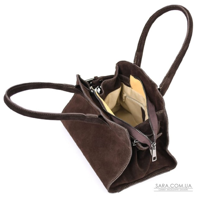 Замшева жіноча сумка тоут Італія Firenze fz3752_chok у кольорі шоколад