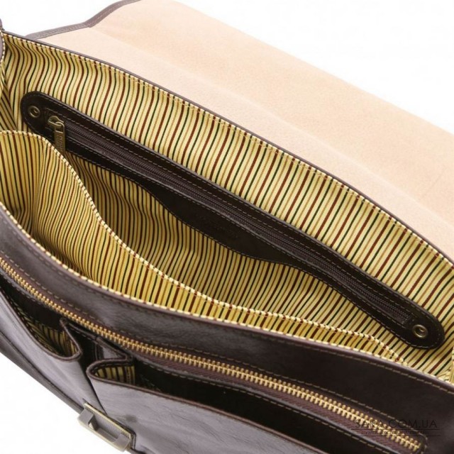 Портфель чоловічий Tuscany Leather Modena - це італійський витвір мистецтва. Його головним достоїнством вважається місткість і функціонал. Модель має пару внутрішніх кишень і 2 відкритих накладних кишені для телефону, канцелярії. Вони закриваються на магнітні кнопки, декоровані пряжками. Ефектно виглядає латунна фурнітура, яка надає благородний вік серії Modena.