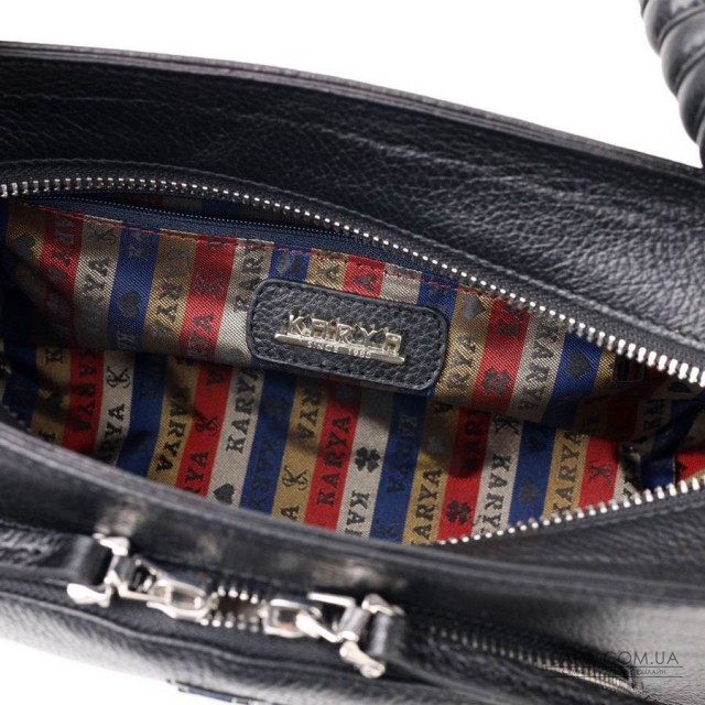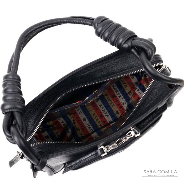 Компактна сумка жіноча з дрібнозернистої натуральної шкіри, в класичному чорному кольорі. Сумка функціональна та зручна в експлуатації, у виробі використана якісна фурнітура та міцна підкладка. Аксесуар упакований у фірмовий текстильний мішок Karya. Сумка з натуральної шкіри завжди буде чудовим подарунком будь-якій жінці.