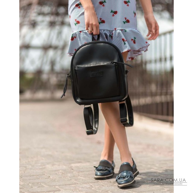 Місткий жіночий рюкзак. Модель має велике відділення з трьома кишенями, одна з яких на блискавці для портмоне або телефону, і одну місту кишеню на лицьовій стороні. Довжина лямок змінюється за допомогою металевих регуляторів. Усередині щільна плащова підкладка чорного кольору.