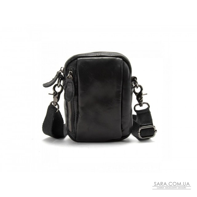 Сумка через плече Tiding Bag M39-6072A із натуральної шкіри у чорному кольорі, гладка глянсова шкіра.