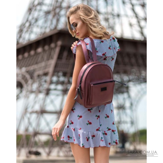 Місткий жіночий рюкзак. Модель має велике відділення з трьома кишенями, один з яких на блискавці для портмоне або телефону, і один місткий кишеню на лицьовій стороні. Довжина лямок змінюється за допомогою металевих регуляторів. Всередині щільна плащова підкладка чорного кольору.