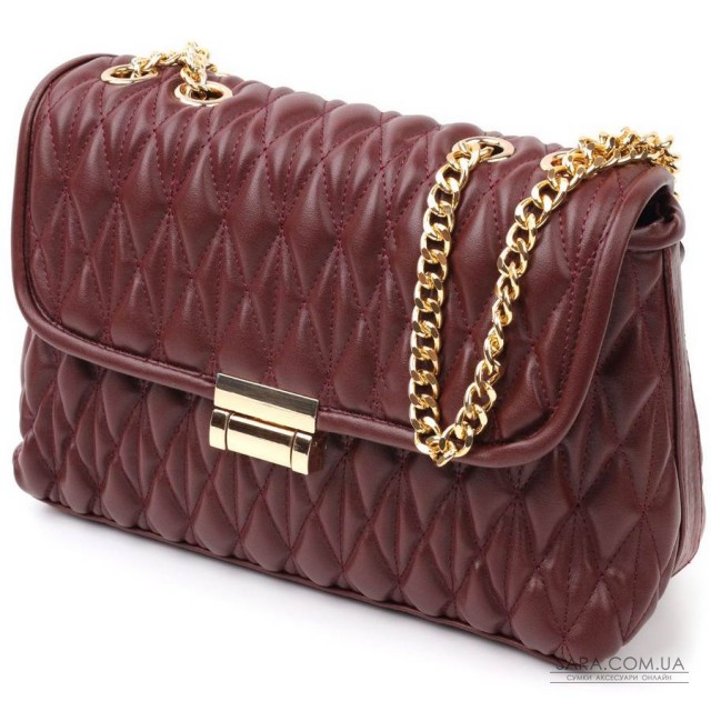 Оригінальна сумка горизонтального типу в класичному коричневому кольорі, зі стьобаної еко-шкіри. Сумка дуже м'яка і приємна на дотик. Сумка має стильний дизайн. Аксесуар виглядає презентабельно та підійде як під вечірній, так і повсякденний образ. Фурнітура у сумці золотого кольору, ремені на плечі зроблені з ланцюжків та ручок з еко-шкіри. Модель довгий час залишається у ідеальному стані, таку сумку приємно носити. Може бути чудовим варіантом для подарунка будь-якій жінці.