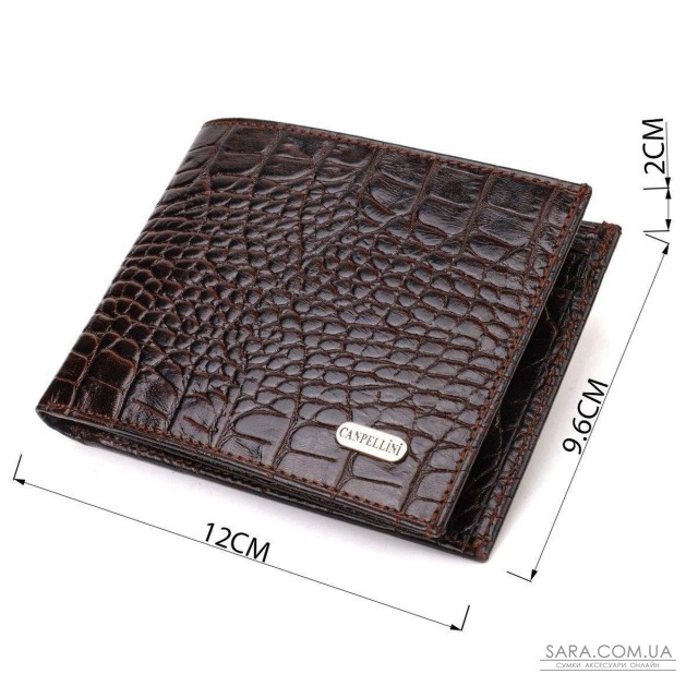 Цікавий чоловічий гаманець із натуральної шкіри з тисненням під крокодила. Аксесуар має одне відділення для купюр усіх номіналів, шість осередків для карток, три кишені під сіточкою для документів та монетницю. Закривається аксесуар навпіл без застібки. На лицьовій стороні, у правому нижньому куті металевий логотип компанії виробника. Купуючи шкіряний аксесуар цієї фірми, собі або на подарунок, будьте певні, що він прослужить Вам не один рік.