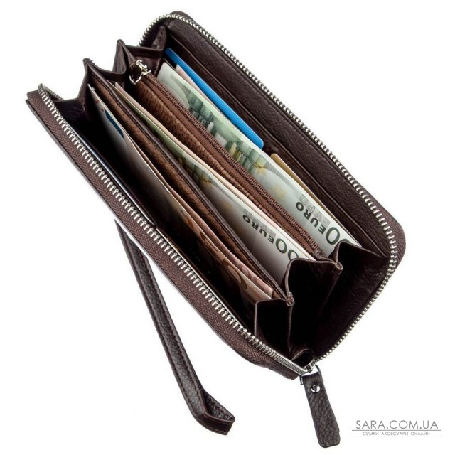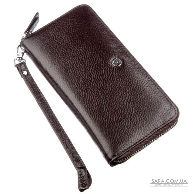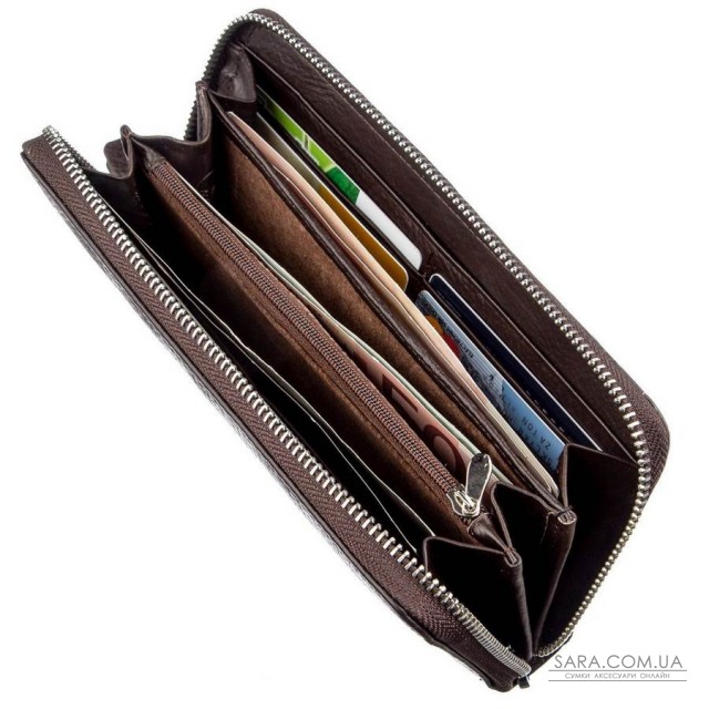 Відмінне чоловіче портмоне-клатч з натуральної шкіри коричневого кольору. Цей виріб неодмінно виділяє його власника і підкреслює прекрасне почуття стилю. Але крім дизайнерських переваг зовнішнього вигляду, цей клатч дуже функціональний і практичний. У нього помістяться всі Ваші картки та інші необхідні цінні речі. Купюри завжди залишатимуться цілими і не пом'ятими, а це погодьтеся дуже зручно. Також є можливість носити дане портмоне не в сумці або портфелі, а просто на зап'ясті, що дуже практично і зручно, якщо вам треба взяти з собою мінімум речей. Також цей гаманець стане прекрасним подарунком для будь-якого чоловіка. Упаковано портмоне в фірмову картонну коробку.