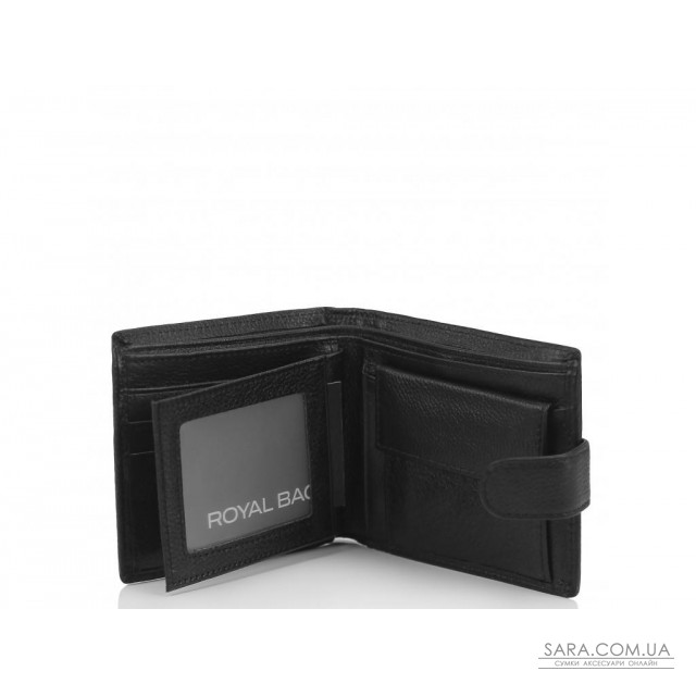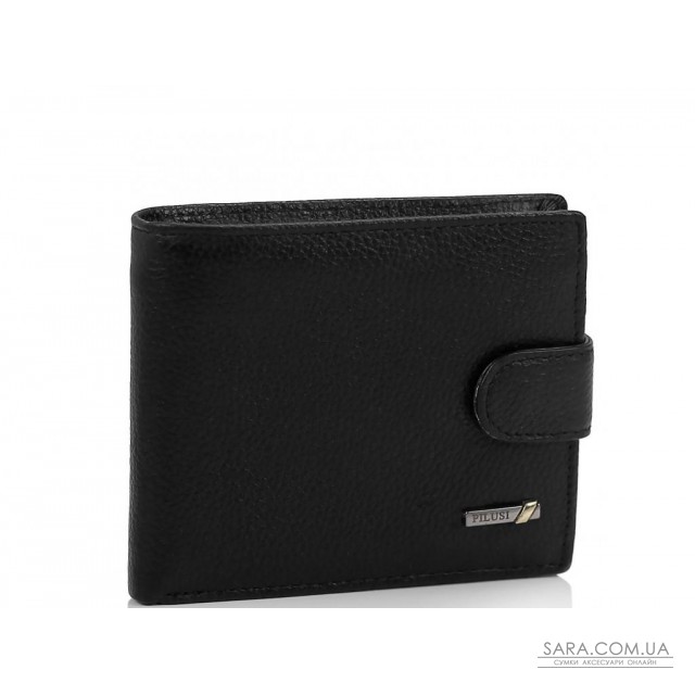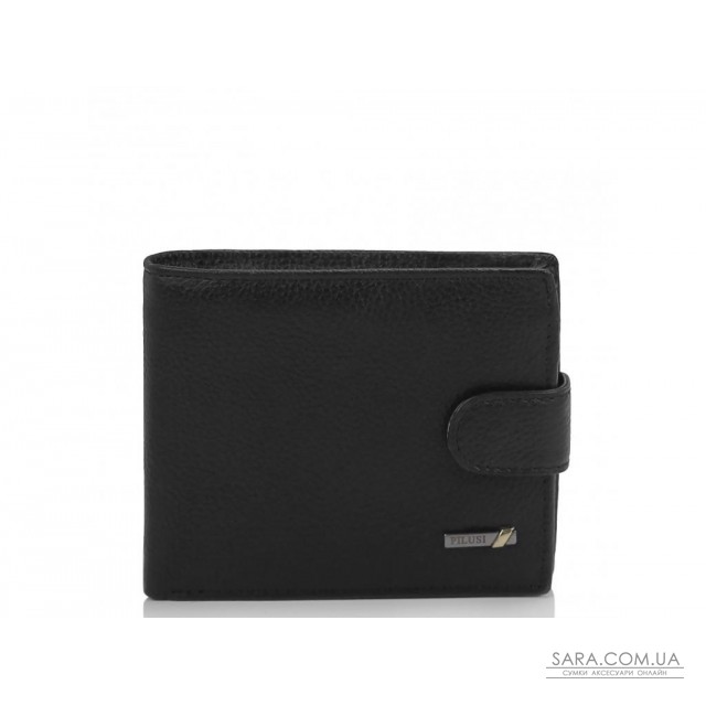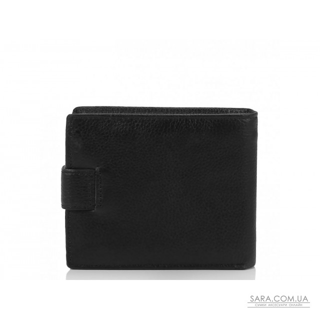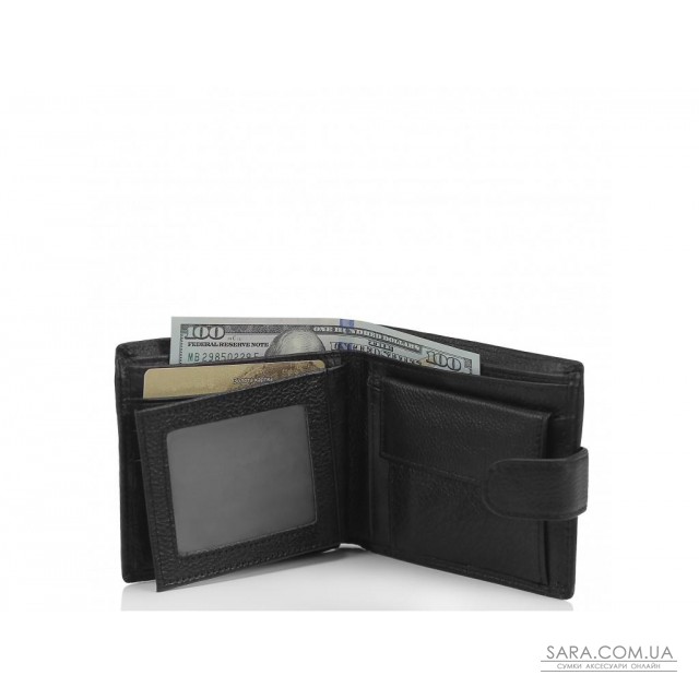 Чоловічий гаманець в чорному кольорі, закривається на хлястик з кнопкою. Усередині гаманця є два великих відкритих відділи під купюри, і один закривається на блискавку. Також гаманець має монетниці на кнопці. Для зберігання візиток і карток передбачено три основні слота, а також бічні віконця, серед яких два прозорих для зберігання фото або прав.