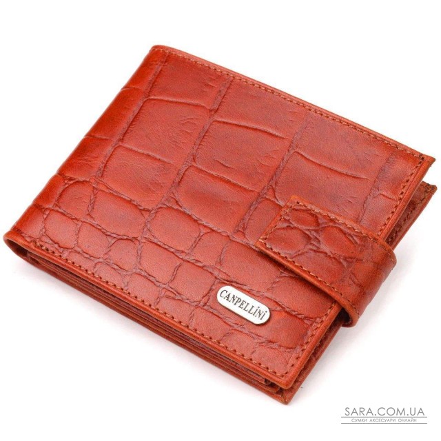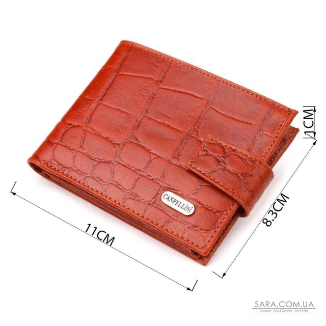 Красиве чоловіче портмоне з натуральної фактурної шкіри з тисненням під крокодила. Аксесуар має одне основне відділення з перегородкою, в якому розміщуються купюри всіх номіналів, дванадцять кишень для карток, чотири з яких під сіточкою. Закривається аксесуар хлястиком на кнопку. Колір фурнітури – срібло. Ви легко зможете помістити його в кишеню штанів чи маленьку сумку. Запакований гаманець картонну коробку. Шкіряний гаманець є чудовим подарунком для рідних та близьких людей.