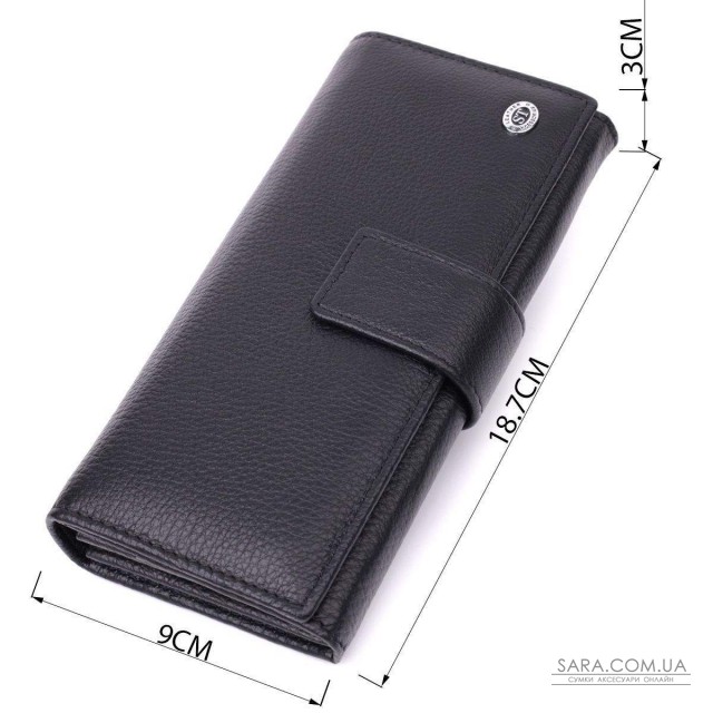 Модне жіноче портмоне вертикального типу, що закривається навпіл хлястиком на кнопку. Модель пошита з якісної шкіри, яка чудово проявила себе у довгостроковій експлуатації. Аксесуар складається з чотирьох відділень для купюр, двох кишень на блискавці, чотирнадцяти осередків для пластикових карток, двох прилеглих кишень та монетниці зовні. Модель упакована в коробочку, що дуже зручно, якщо виріб призначений для подарунка.
