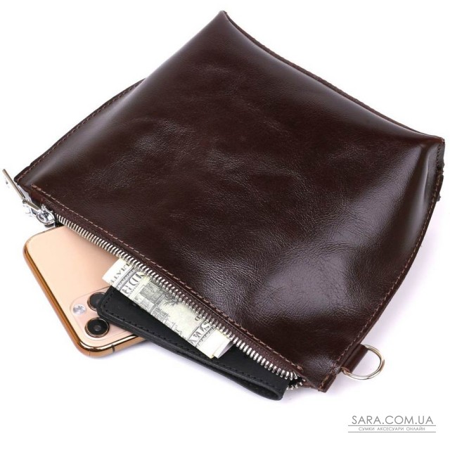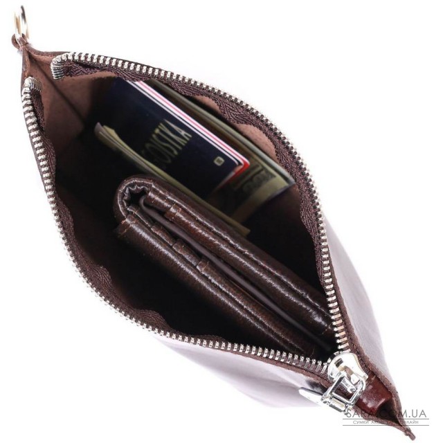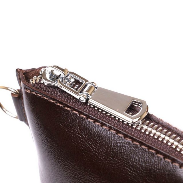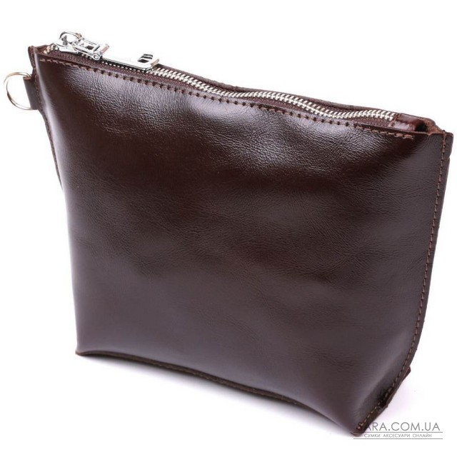 Відмінна косметичка для цінних негабаритних речей, яка легко поміститься у сумку чи рюкзак. Колір виробу – насичений коричневий з легким переливом, фактура – гладка та приємна на дотик. Матеріал – натуральна шкіра з покращеними характеристиками міцності та зносостійкості. Закривається косметичка на блискавку.