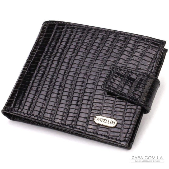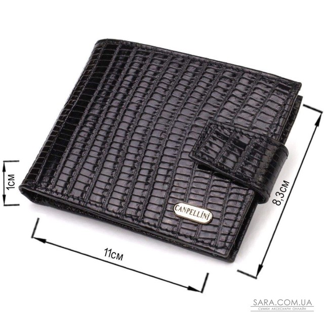 Оригінальний чоловічий гаманець з натуральної фактурної шкіри з тисненням. Аксесуар має одне основне відділення з перегородкою, в яке поміщаються купюри всіх номіналів, дев'ять кишень для карток, дві з яких під сіточкою, монетниця та дві прилеглі кишені. Закривається аксесуар хлястиком на кнопку. Колір фурнітури – срібло. Ви легко зможете помістити його в кишеню штанів чи маленьку сумку. Запакований гаманець картонну коробку. Шкіряний гаманець є чудовим подарунком для рідних та близьких людей.
