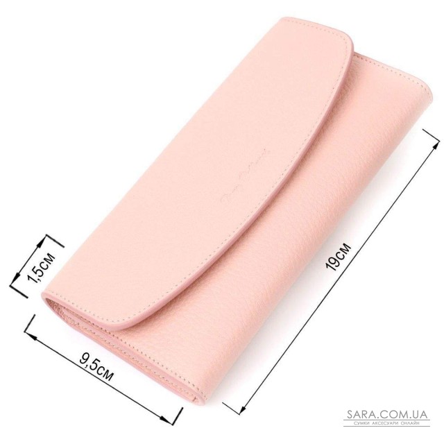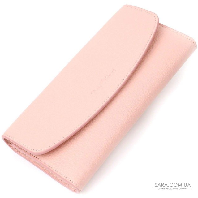 Лаконічний жіночий гаманець з натуральної шкіри флотар, для якої характерна міцність, зносостійкість та зерниста фактура. Аксесуар складається з одного широкого відділення для купюр, дванадцяти осередків для пластикових карток, однієї прилеглої кишені та монетниці на блискавці. У виробі використано якісну фурнітуру золотистого кольору. Закривається гаманець клапаном на кнопку. Купуючи цей шкіряний гаманець, Ви не тільки отримуєте стильну річ, але й отримуєте якісний аксесуар, який прослужить не один рік