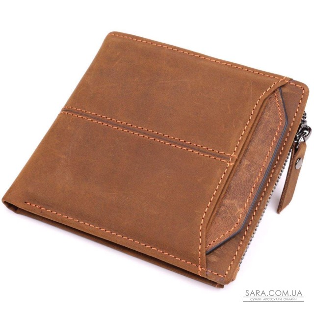 Чудовий гаманець для чоловіків з натуральної vintage шкіри з ефектом старовини. Аксесуар застібається на хлястик із кнопкою. Модель невеликого розміру добре поміщається в невелику сумку. Носять аксесуари з такої шкіри дуже добре. Такий гаманець додасть родзинку у ваш образ і стане чудовим доповненням до вашого стилю. Аксесуар упакований у тканинний чохол, що захищає його від попадання пилу та різних забруднень. Може бути чудовим подарунком для близької людини.