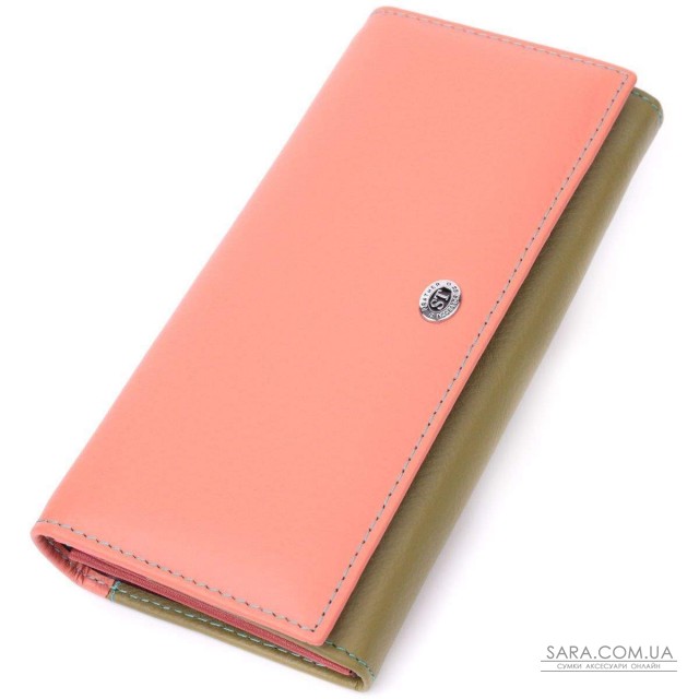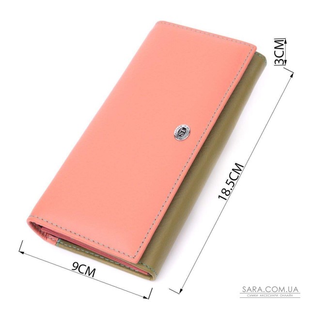 Елегантне жіноче портмоне в два складення з натуральної шкіри найвищої якості. Перше, що впадає в око це колірне рішення, замість однотонного аксесуара ми маємо різнокольоровий, який містить два основні зовнішні кольори і кілька додаткових всередині. Шкіряне портмоне дуже практичне і служить досить довго. Аксесуар складається з чотирьох містких кишень для купюр, двох кишень на блискавках через всю довжину, восьми осередків для пластикових карток, прихованої кишені та зовнішньої кишені на блискавці, що чудово прослужить для монет. Портмоне доповнено надійною фурнітурою. Укомплектований гаманець у фірмову картонну коробку білого кольору.