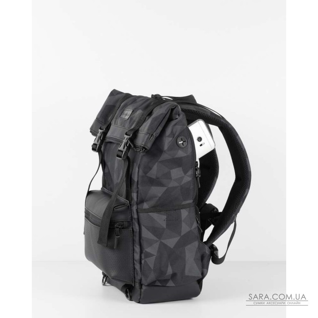 на передній частині рюкзака є 2 кишені (одна з них, на клапані), на бічних стінках - 2 зовнішніх, 1 потайна для смартфона і ще 1 для швидкого доступу до середини рюкзака (що б не розстібати головне відділення). |