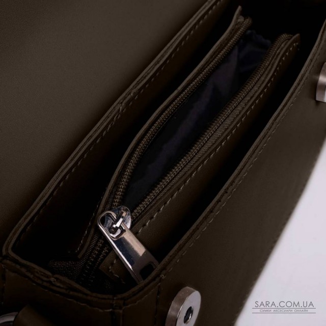 Сумка на одно общее отделение. Несмотря на небольшие размеры, сумочка оказалась достаточно вместительная. Все изделие закрывается на молнию. Длинный ремень с возможностью регулировки длины изготовлен из кожзаменителя. На задней стенке вмонтирован карман, который закрываетса на молнию.