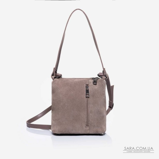 Кросс-боди модель изготовлена ​​из кожзаменителя высокого качества и натурального замша. Сумочка небольших размеров на одно отделение, но очень вместительная. Не плоская и имеет уплотненное дно на металлических ножках, хорошо сохраняет форму и предотвращает повреждения. Имеется одна короткая ручка и один длинный регулируемый плечевой ремень, каждая из которых в отдельности крепится надежными застежками-карабинами к металлическим полукольцам, что позволяет периодически менять ручки в зависимости от потребностей. Хорошим дополнением станут боковые функциональные карманы.