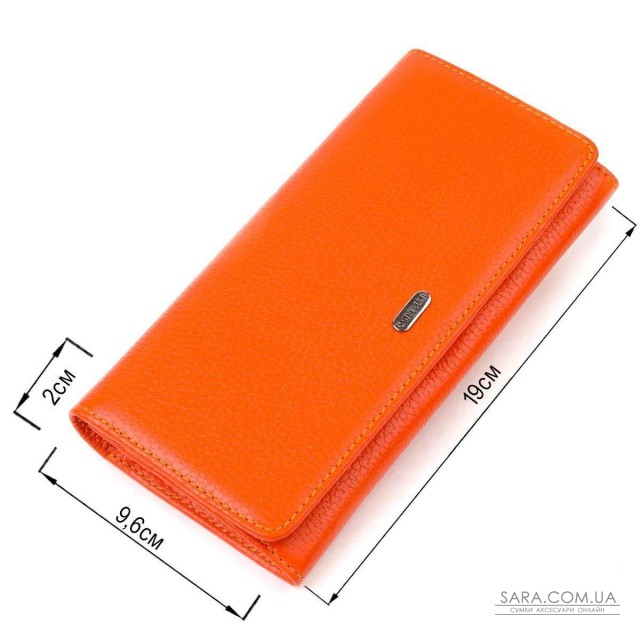 Красивый женский кошелек, из натуральной кожи. Аксессуар имеет три основных отделения, в которые помещаются купюры всех номиналов, две перегородки, одна из них на молнии, одиннадцать карманов для карточек, один из которых под сеточкой, монетница на молнии - снаружи и один прилегающий карман. Закрывается аксессуар клапаном на кнопку. Отличный аксессуар, надежного производителя, который прослужит очень долго.