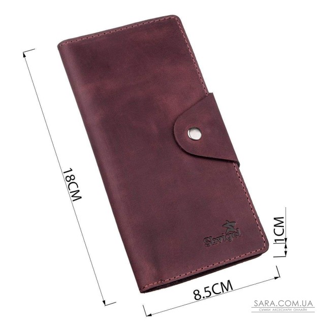 Кошелек из натуральной винтажной кожи оригинального бордового цвета. Застегивается на хлястик с кнопками. Модель имеет матовое покрытие. Достаточно оригинально смотрится. Богатый внешний вид. Сверху прошита ровной строчкой в дизайн изделия. Имеет строгий выдержанный дизайн в классическом стиле. Идеально подойдет для тех, кто любит яркость и оригинальность. Не занимает много места в вашей сумочке. Тонкий и одновременно вместительный. Будет отличным подарком. Кошелек имеет высокую износостойкость к потертостям и трещинам. Модель доступна в разных цветах и типах кожи. Мы уверены, что бумажник удивит своего владельца.