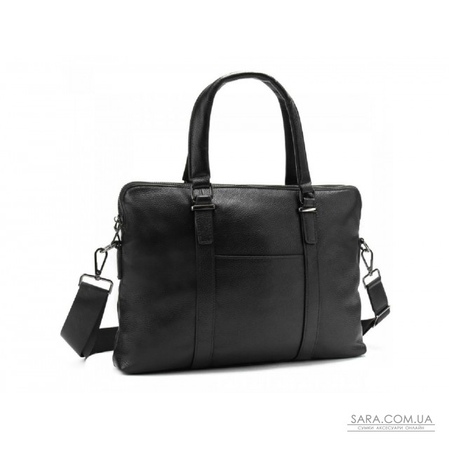 Сумка мужская кожаная Tiding Bag M56-9119A из натуральной кожи в черном цвете, зернистой фактуры.