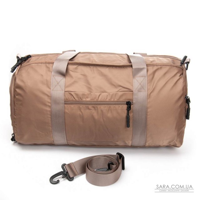 Одно отделение, закрывается на молнию. Внутри отделения есть большой боковой карман на молнии. Снаружи также расположен большой карман-отделение на молнии с герметичной подкладкой. На фасаде находятся три открытых кармана. На обратной стороне расположен карман на молнии и крепление на ручку чемодана. На торцах сумки есть два кармана на молнии, один из которых предназначен для обуви.