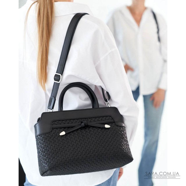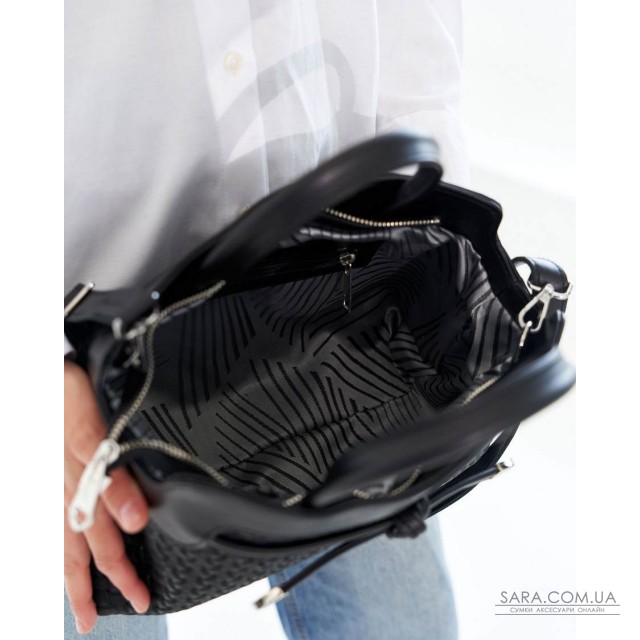 Сумка женская K73754, цвет черный, материал натуральная кожа. Сумка открывается молнией. Внутри сумка имеет один открытый карман и на змейке