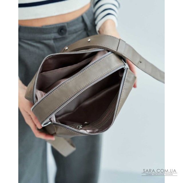 Сумка женская K74706, производитель WeLassie Украина, цвет кофейный, материал натуральная кожа. Сумка на два отделения, открывается при помощи молнии. Внутри сумка имеет один открытый карман и карман на змейке.