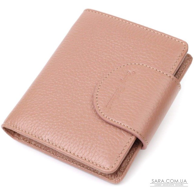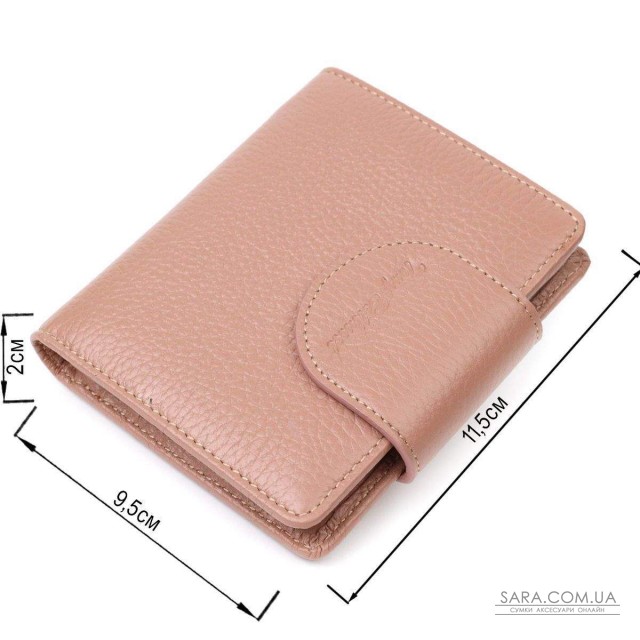 Красивый вместительный женский кошелек из натуральной кожи. Аксессуар состоит из двух широких отделений для купюр, девяти ячеек для пластиковых карт, двух прилегающих карманов, кармана под сеточкой и монетницы под клапаном снаружи. В изделии использована качественная фурнитура золотистого цвета. Закрывается кошелек кожаным хлястиком на кнопку. Покупая этот кожаный кошелек, Вы не только приобретаете стильную вещь, но и получаете качественный аксессуар, который прослужит не один год.