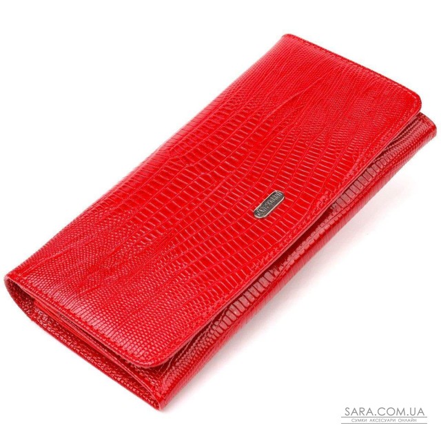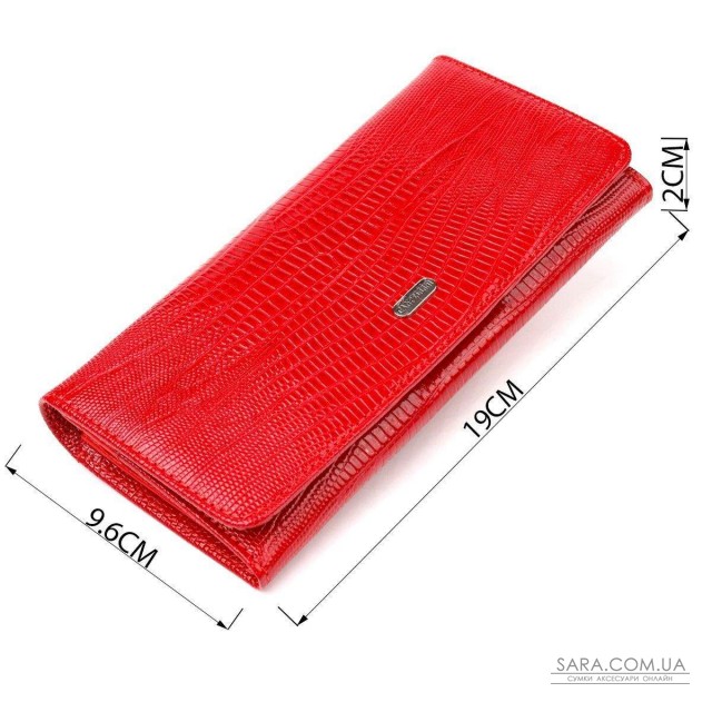 Яркий фактурный женский кошелек, из натуральной кожи, с тиснением под рептилию. Аксессуар имеет три основных отделения, в которые помещаются купюры всех номиналов, две перегородки, одна из них на молнии, одиннадцать карманов для карточек, один из которых под сеточкой, монетница на молнии - снаружи и один прилегающий карман. Закрывается аксессуар клапаном на кнопку. Отличный аксессуар, надежного производителя, который прослужит очень долго.