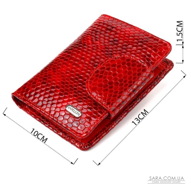 Лакированный кошелек для женщин компактного размера из натуральной фактурной кожи, с тиснением под змею. Аксессуар имеет отделение для купюр с перегородкой, монетницу, что закрывается клапаном на кнопку, скрытый карман и семь отсеков для карточек, два из них под сеточкой. Закрывается аксессуар в два сложения хлястиком на кнопку. Качественный кожаный аксессуар всегда считался показателем вкуса и достатка, именно такие изделия представлени в нашем магазине, у нас каждый найдет что-то для себя.