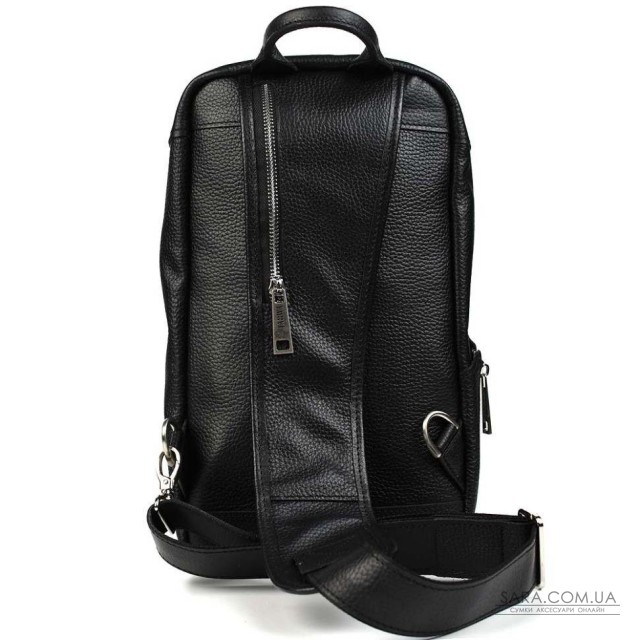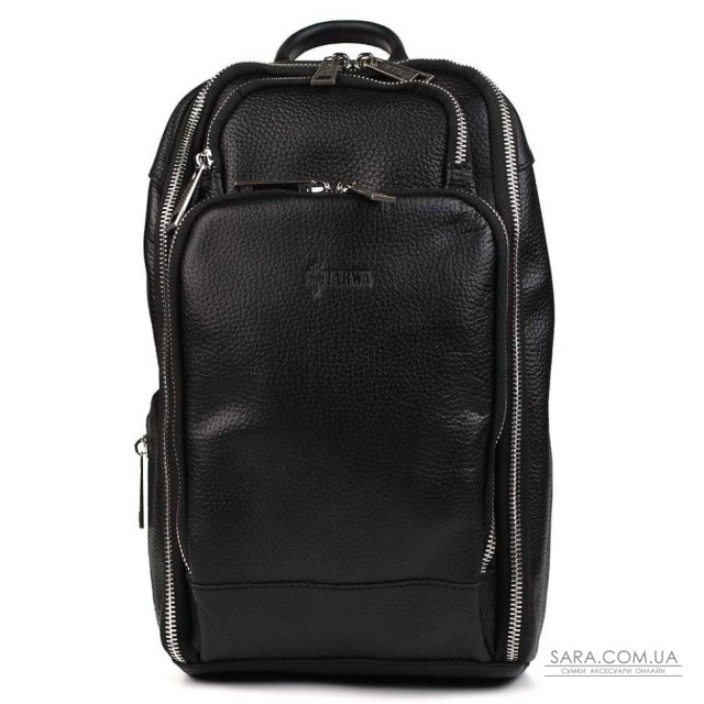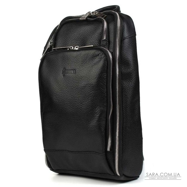Кожаный рюкзак слинг на одно плечо TARWA FA-0910-4lx из черной мягкой кожи флотар. Вместительный рюкзак предназначен для повседневного использования. Основное отделение открывается на всю ширину. Внутри множество карманов, органайзеров. Передний карман на молнии. Шлейка перестегивается как на левую, так и на правую руку. Стильный аксессуар изготовлен из натуральной кожи лицевой кожи флотар.