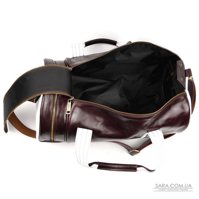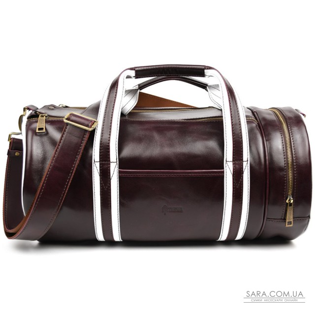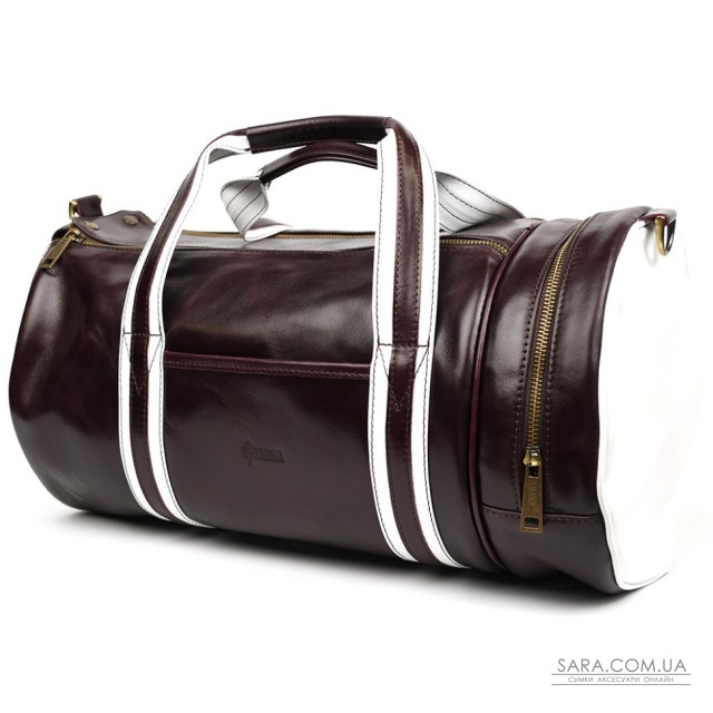 Спортивная статусная кожаная сумка люкс сегмента TARWA GSR-5565-4lx в комбинации белой кожи и кожи алькор в бордовом цвете