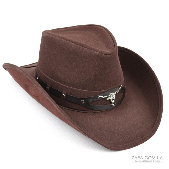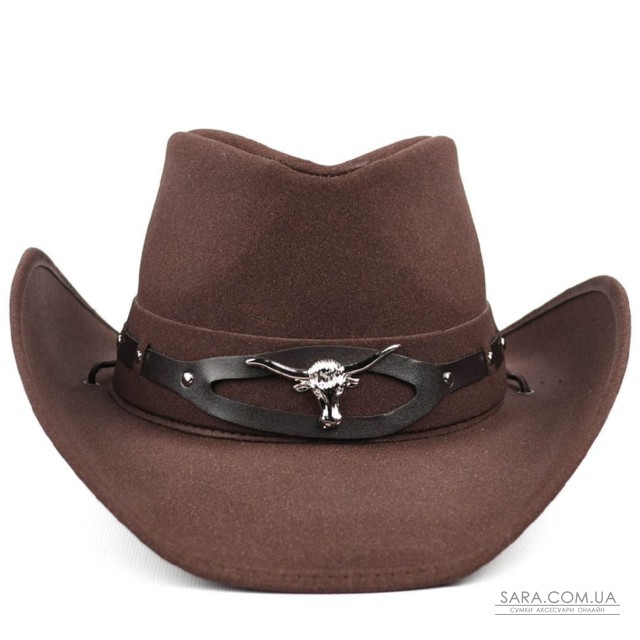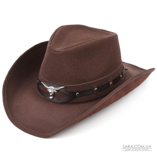 Брутальная шляпа для настоящих брутальных мужиков, мачо и ранчеров. Если у тебя есть хотя бы 15 соток под картошку, пикап и конь - этот аксессуар самое оно! Идеально подходит курсировать среди полей подсолнечника или жита. На лицевой стороне силует головы быка. В основании цилиндра шляпы так же присуствуют декоративные кожаные элементы и плетение.