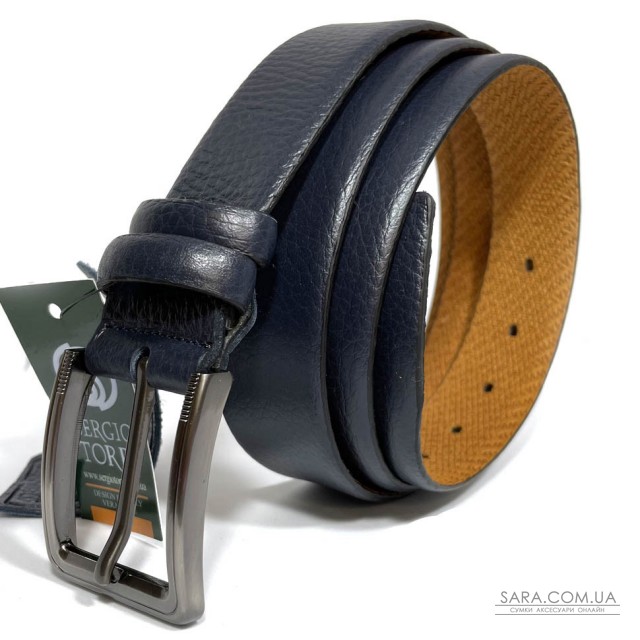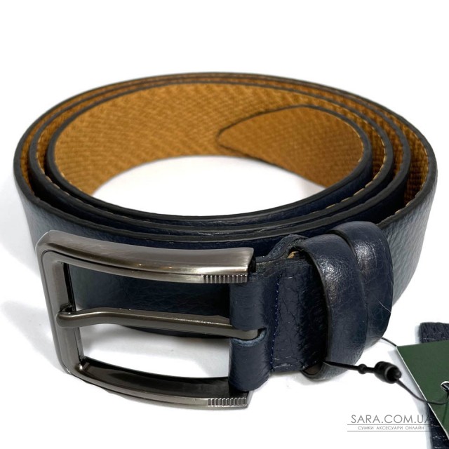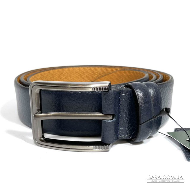 Синий ремень из оленьей кожи с классической пряжкой, ширина 35мм. Ремень подходит как для брюк, так и для джинсов