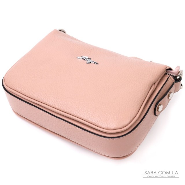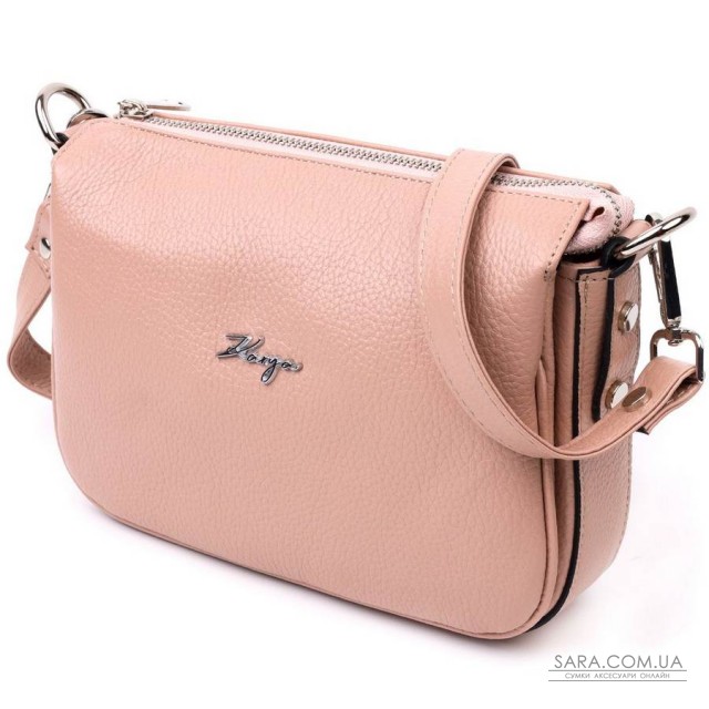 Очаровательная женская сумка небольшого размера из натуральной кожи, в нежном пудровом цвете. Фурнитура серебряного цвета. Сумку удобно носить в руке, на плече или через плечо. Сумка упакована в фирменный текстильный чехол Karya. Сумка из натуральной кожи всегда будет отличным подарком любой женщине.