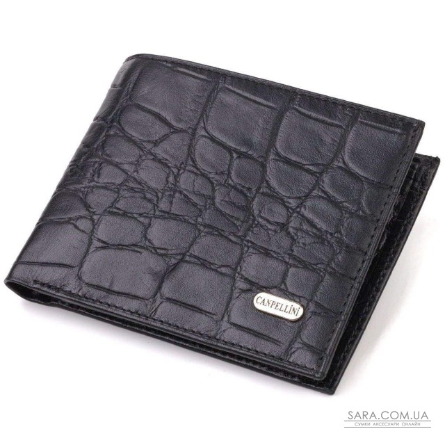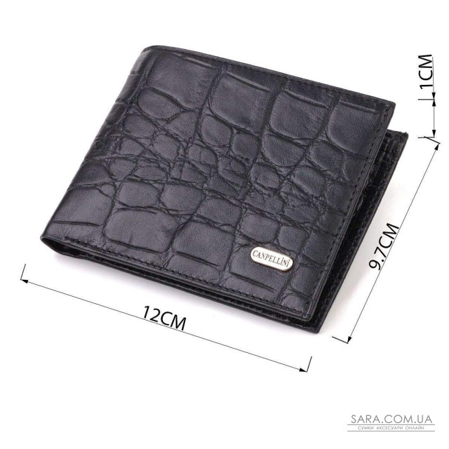 Практичный мужской кошелек в черном цвете, из натуральной кожи с тиснением под крокодила. Аксессуар имеет одно основное отделение с перегородкой, в которое помещаются купюры всех номиналов, четыре кармана для карточек, два кармана под сеточкой для документов, монетницу и три прилегающих кармана. Закрывается аксессуар пополам без застежки. Упакован бумажник картонную коробку. Кожаный кошелек является отменным подарком для родных и близких людей.