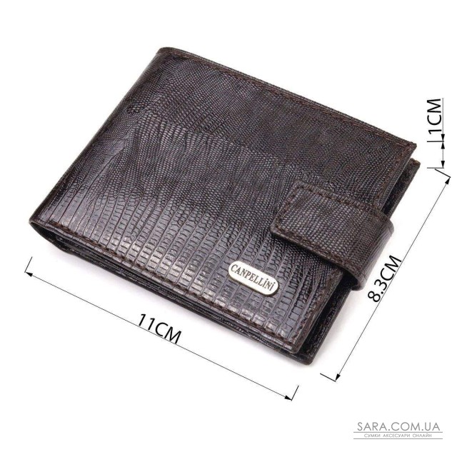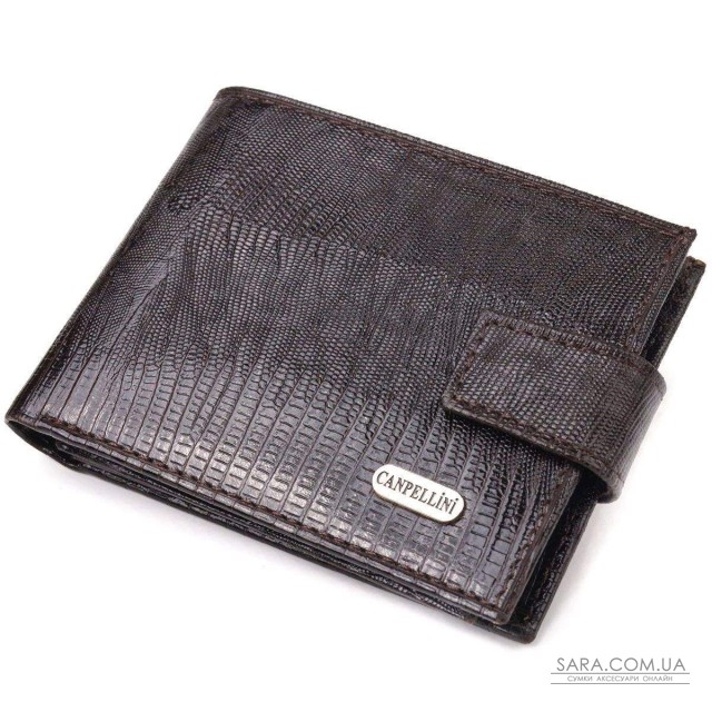 Компактное лакированный портмоне, из натуральной фактурной кожи, с тиснением под рептилию. Аксессуар имеет одно основное отделение с перегородкой, в которое помещаются купюры всех номиналов, двенадцать карманов для карточек, четыре из которых под сеточкой. Закрывается аксессуар хлястиком на кнопку. Цвет фурнитуры – серебро. Вы легко сможете поместить его в карман брюк или маленькую сумку. Упакован бумажник картонную коробку. Кожаный кошелек является отменным подарком для родных и близких людей.