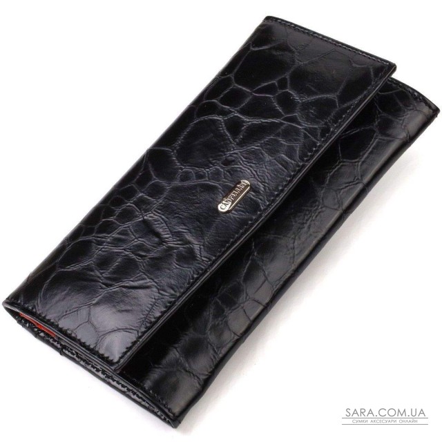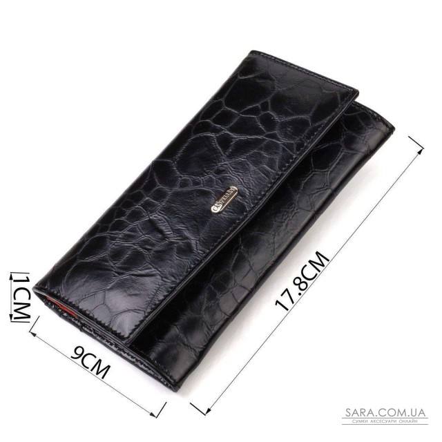 Фактурный женский кошелек горизонтального типа из натуральной кожи. Аксессуар имеет одно основное отделение, шесть карманов для карточек (один под сеточкой), один скрытый карман, три прилегающих кармана и монетницу. Закрывается аксессуар клапаном на кнопку. Приобретая кожаный аксессуар этой фирмы, себе или на подарок, будьте уверены, что он прослужит Вам не один год.